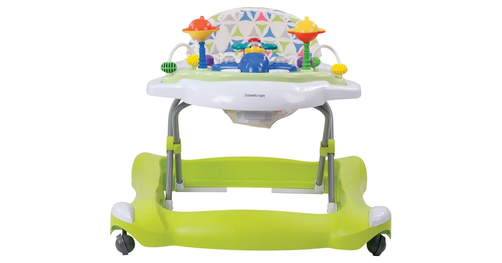 Adjustable height baby walkers for boys and girls with easy clean tray and 8 universal wheels.